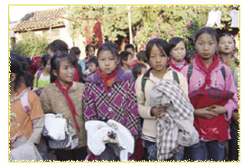 inisiat tiba di Distrik Dongchuan dan di sana membeli barang-barang bantuan